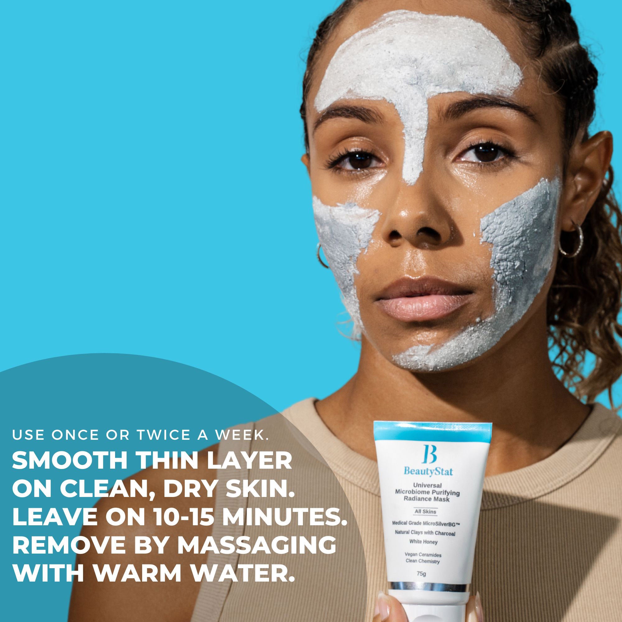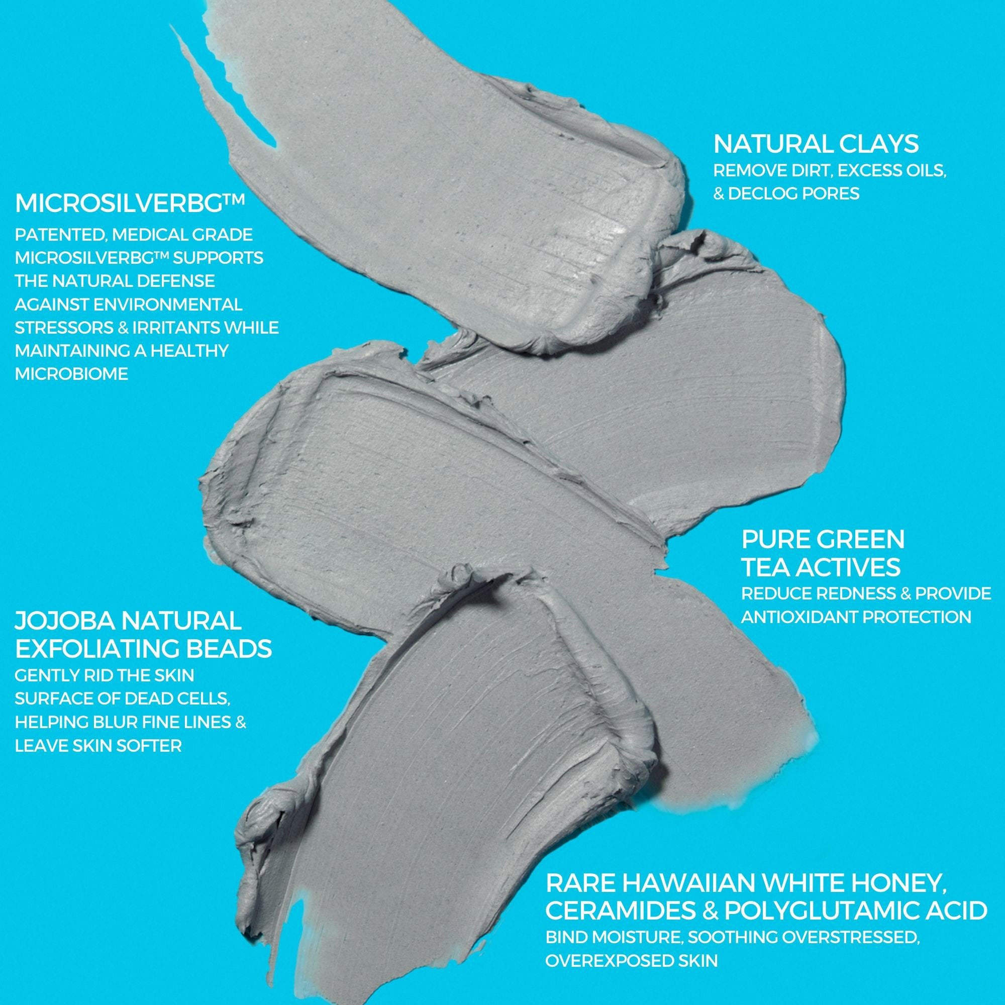 This mask is clinically and dermatologist-tested for all skin types and features a patented, medical-grade MicroSilverBG™, a natural ingredient that helps the skin to become more resilient by protecting its flora and microbiome. A proprietary blend of natural clays and charcoal draws out impurities, deep cleans, smoothes, and softens without stripping or drying skin.